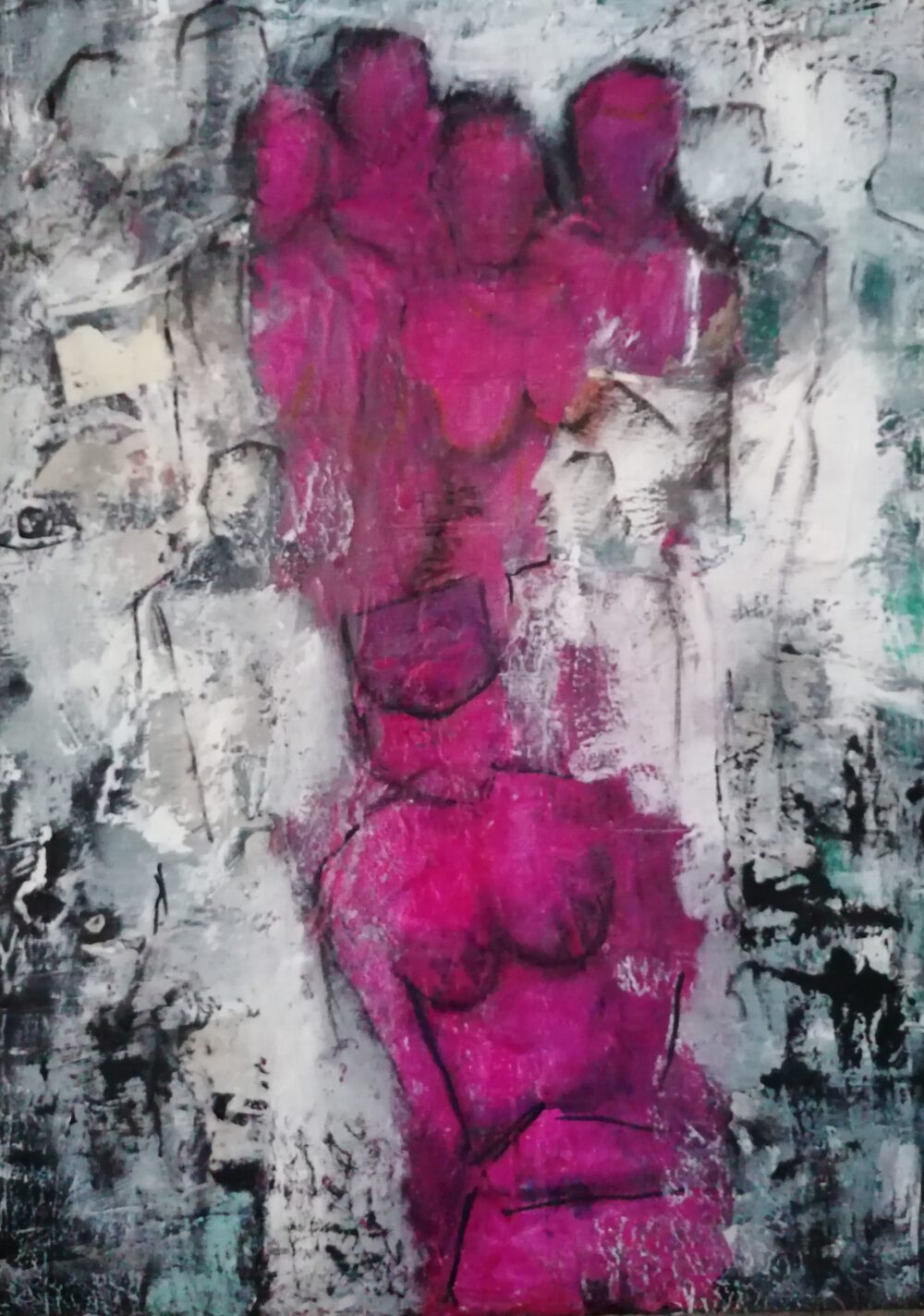 Acryl, Collage, XL-Leinwand 70 x 50 x 4,5